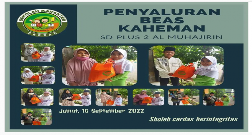 Penyaluran Beas Kaheman SD Plus 2 Al Muhajirin ke warga sekitar