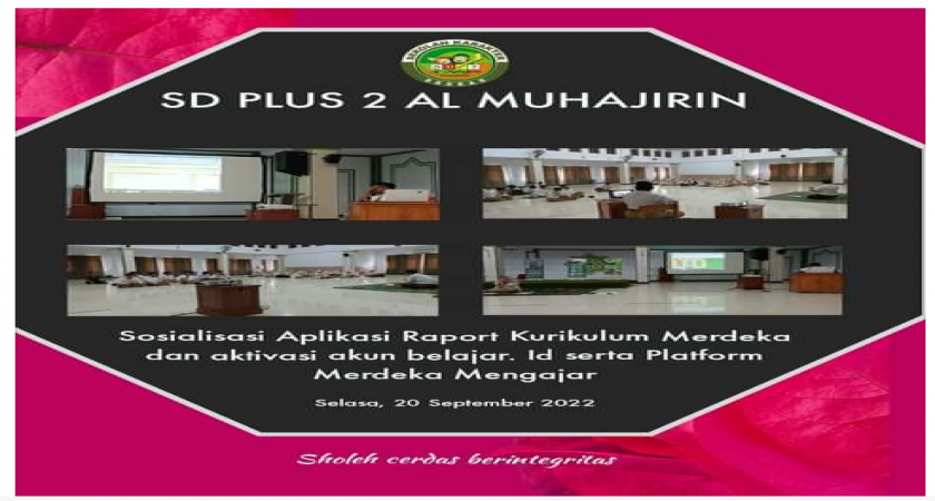 Sosialisasi Rapor Kurikulum Merdeka, aktivasi akun belajar. Id, pembuatan GCR Kelas serta penggunaan Platform Merdeka Mengajar SD Plus 2 Al Muhajirin. Selasa, 20 September 2022.